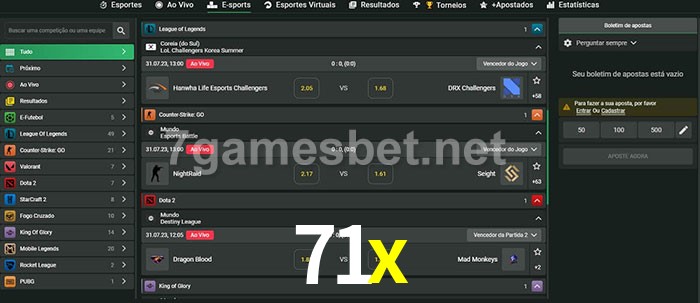 A aposta 71x oferece aos jogadores a experiência mais conveniente de apostas em eSports!